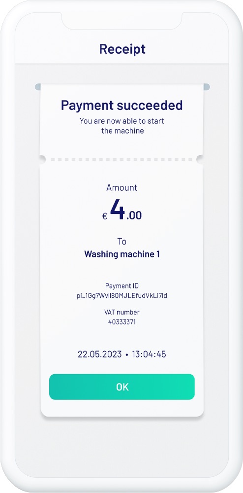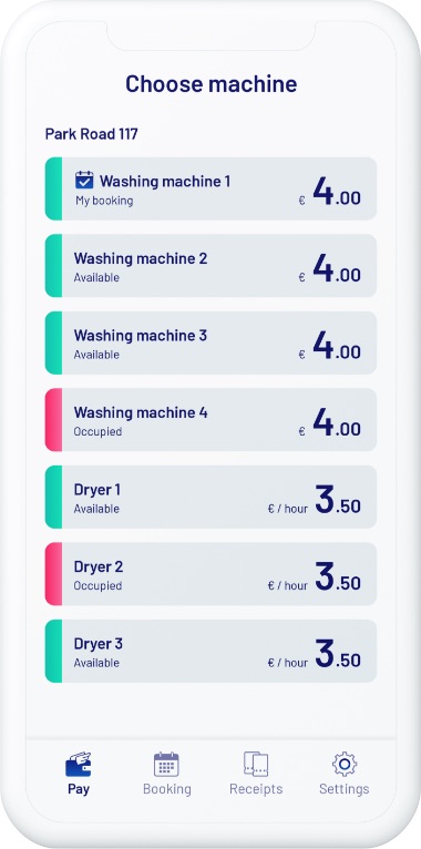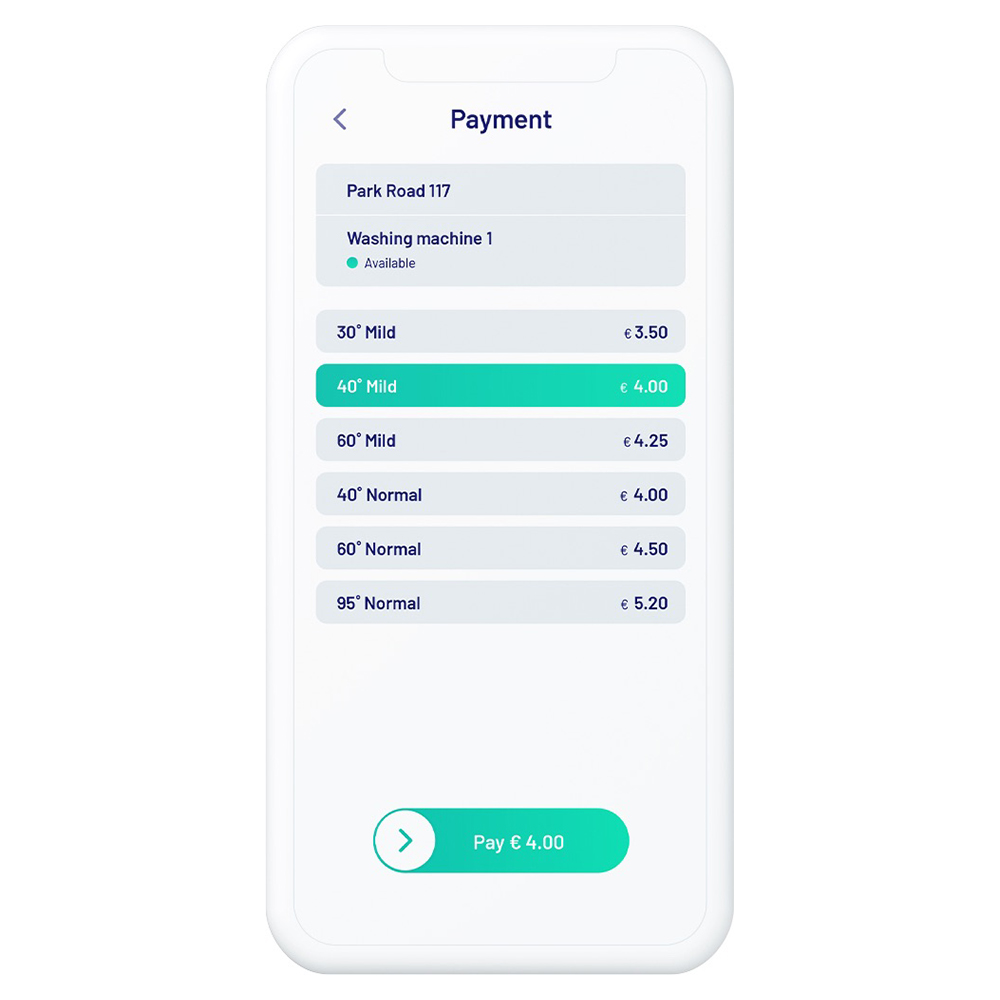They just have to put their laundry into the machine and pay directly from the mobile app with their preferred payment method within seconds. When the cycle is over, they will receive a new notification to remind them about their clothes.